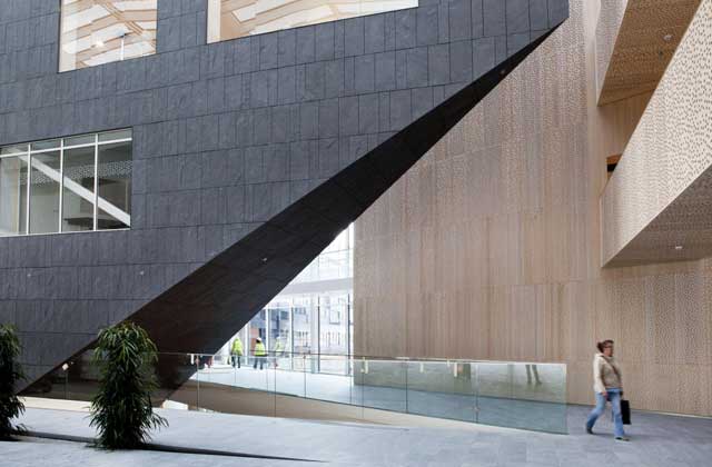 Designed by Arkitema Architects, the 22,500 square-meter (242,000 square-foot) complex has been designed with interior walls that can be erected and moved, thus allowing various office environments to be set up without any impact on the building’s technical installations.