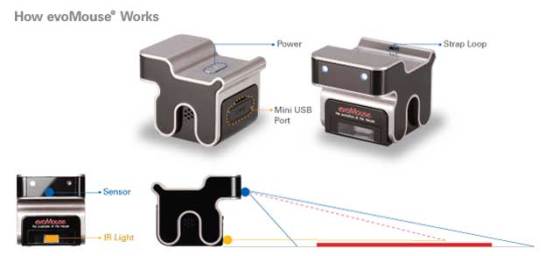 The evoMouse works on nearly any non-reflective, opaque and flat surface, requires very little space, and it enables you to use your hand as a pointer instead pushing around the usual physical mouse. It tracks effortlessly to your comfortable and natural movements. By using it, you can perform common mouse operations using only your fingers. You can control the cursor, click and select, double-click, right-click and drag with basic hand gestures.
